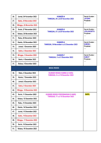 43. Senin, 11 Desember 2023 KUNKER RESES PERORANGAN (9 HARI) DAPIL