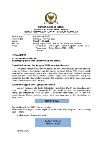 Tempat : Ruang Rapat BURT DPR RI, Gd. Nusantara II Lantai 2