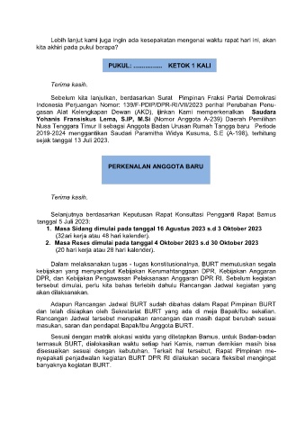 Indonesia Perjuangan Nomor: 139/F-PDIP/DPR-RI/VII/2023 perihal Perubahan Penu-