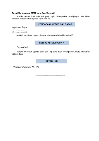Apakah keputusan rapat ini dapat kita sepakati dan kita setujui?
