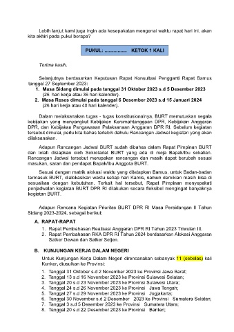 penjadwalan kegiatan BURT DPR RI dilakukan secara fleksibel mengingat banyaknya
