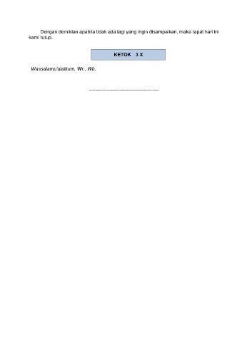 Dengan demikian apabila tidak ada lagi yang ingin disampaikan, maka rapat hari ini kami tutup. KETOK 3 X Wassalamu’alaikum, Wr., Wb. -------------------------------------------