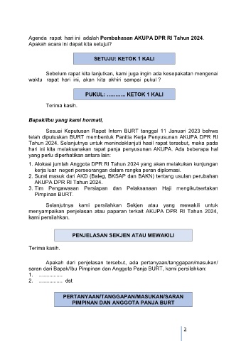 Agenda rapat hari ini adalah Pembahasan AKUPA DPR RI Tahun 2024.