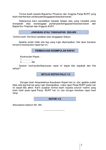 Apakah kesimpulan/keputusan rapat ini dapat kita sepakati dan kita