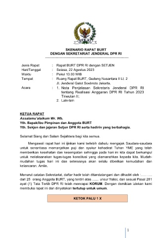 Acara : 1. Nota Penjelasan Sekretaris Jenderal DPR RI