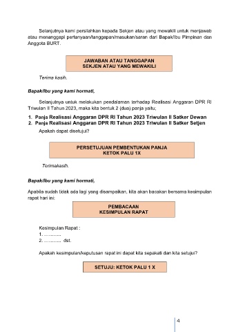 atau menanggapi pertanyaan/tanggapan/masukan/saran dari Bapak/Ibu Pimpinan dan