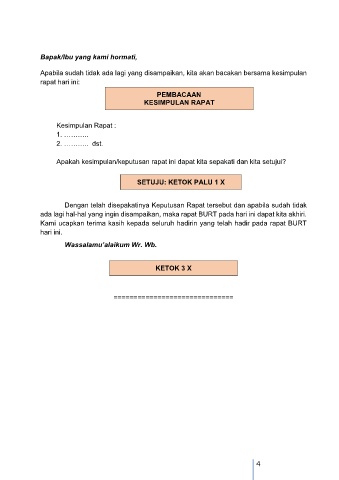 Apakah kesimpulan/keputusan rapat ini dapat kita sepakati dan kita setujui?