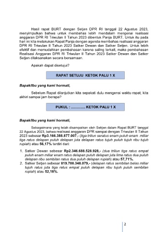 Hasil rapat BURT dengan Setjen DPR RI tanggal 22 Agustus 2023,