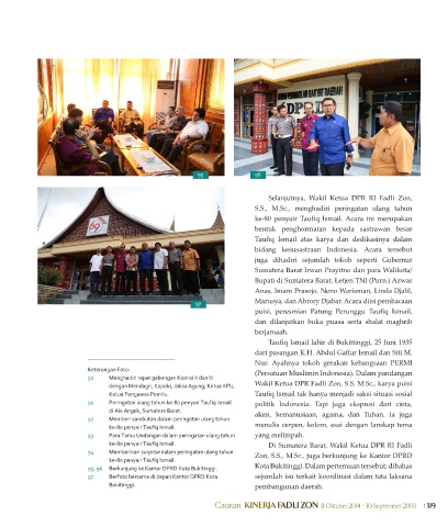 ke-80 penyair Taufiq Ismail. Di Sumatera Barat, Wakil Ketua DPR RI Fadli