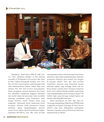 Assembly of The Republic of Korea Hon. Mrs. Shon pertahanan Indonesia akan tumbuh dan disegani