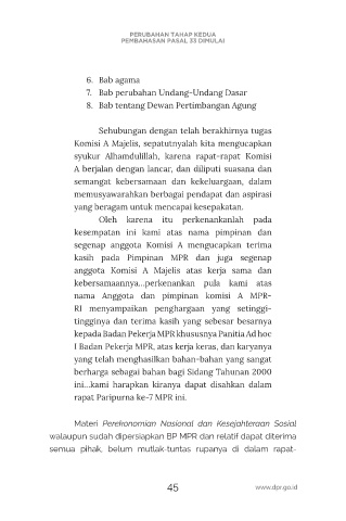 kepada Badan Pekerja MPR khususnya Panitia Ad hoc