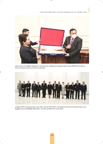 Ketua Senat Oliy Majlis Uzbekistan, memberikan cinderamata kepada Wakil Ketua DPR RI/Korinbang