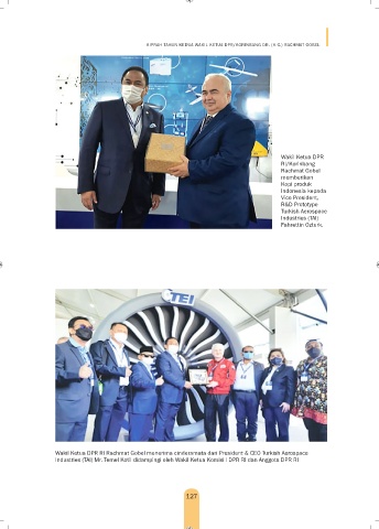Wakil Ketua DPR RI Rachmat Gobel menerima cinderamata dari President & CEO Turkish Aerospace