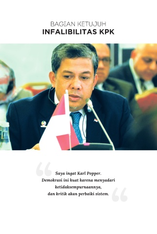 Dr. Fadli Zon, M.Sc BAGIAN KETUJUH INFALIBILITAS KPK Saya ingat Karl Popper. Demokrasi ini kuat karena menyadari ketidaksempurnaannya, dan kritik akan perbaiki sistem. 93