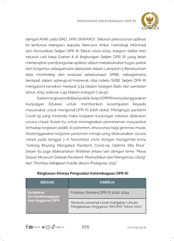 Ringkasan Kinerja Penguatan Kelembagaan DPR RI
