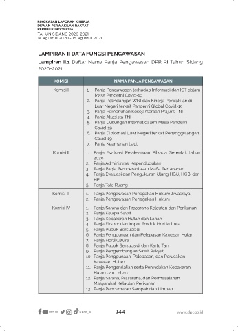 Lampiran II.1 Daftar Nama Panja Pengawasan DPR RI Tahun Sidang