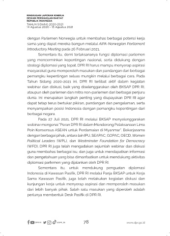 webinar dan diskusi, baik yang diselenggarakan oleh BKSAP DPR RI,