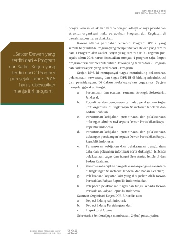 terdiri dari 2 Program Setjen DPR RI mempunyai tugas mendukung kelancaran