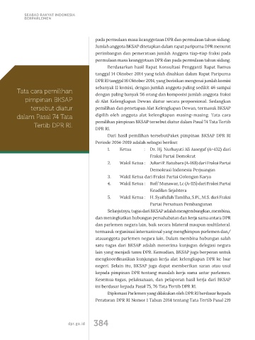 Page 386 - BUKU LIMA - DINAMIKA DAN PERANAN DPR RI DALAM MEMPERBAIKI KEHIDUPAN BERNEGARA PADA ERA REFORMASI 1998-2018