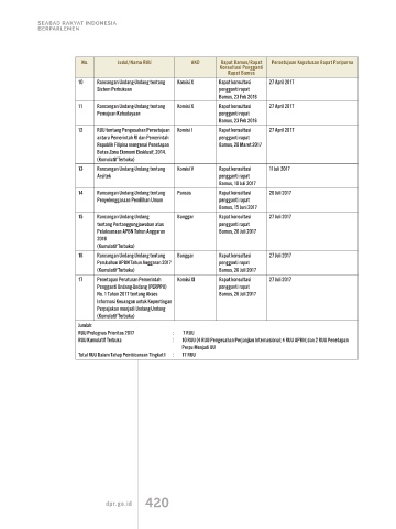 No. Judul/Nama RUU AKD Rapat Bamus/Rapat Persetujuan Keputusan Rapat Paripurna