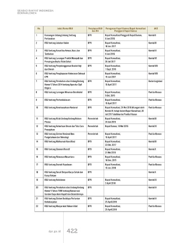 No. Judul/Nama RUU Penyiapan RUU Penugasan Rapat Bamus/Rapat Konsultasi AKD