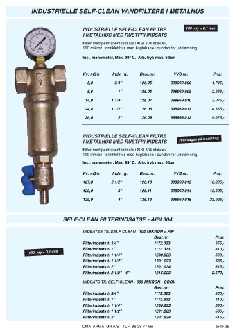 INDUSTRIELLE SELF-CLEAN VANDFILTERE I METALHUS