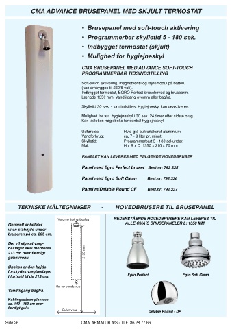 CMA ADVANCE BRUSEPANEL MED SKJULT TERMOSTAT