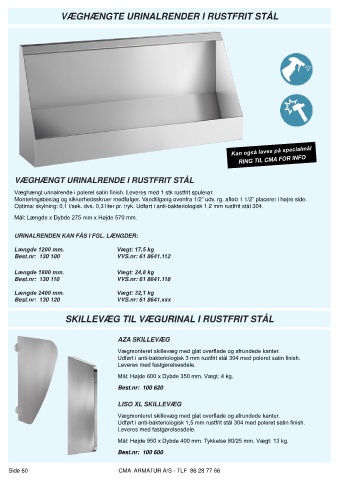 VÆGHÆNGTE URINALRENDER I RUSTFRIT STÅL