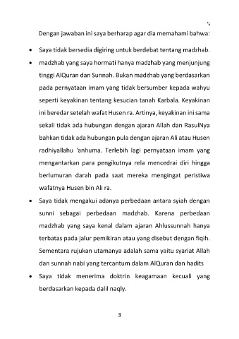 • Saya tidak bersedia digiring untuk berdebat tentang madzhab.