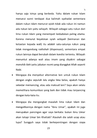 • Mengapa dia menyebut alternative lain untuk rukun Islam