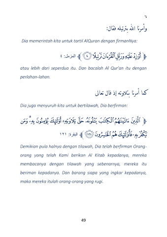 Dia juga menyuruh kita untuk bertilawah, Dia berfirman: