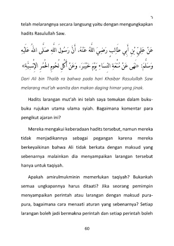 Dari Ali bin Thalib ra bahwa pada hari Khaibar Rasulullah Saw