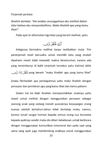 Pada ayat ini ditemukan tiga kata yang berarti melihat, yaitu
