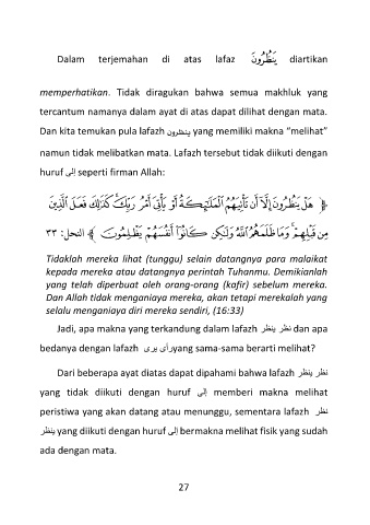 yang tidak diikuti dengan huruf ىلإ memberi makna melihat