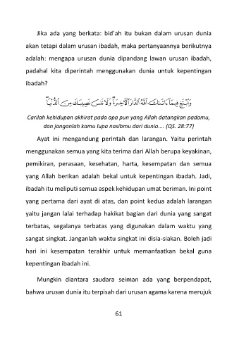 adalah: mengapa urusan dunia dipandang lawan urusan ibadah,
