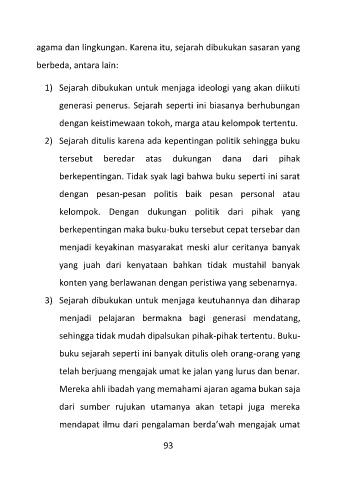agama dan lingkungan. Karena itu, sejarah dibukukan sasaran yang