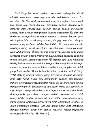yang Mahamulia. Maka beliau bersabda padaku: wahai Ubay!