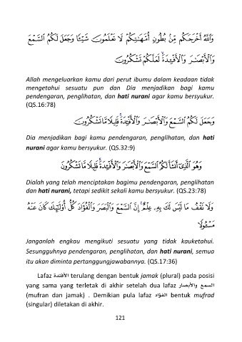 Lafaz ةدئفلأا terulang dengan bentuk jamak (plural) pada posisi