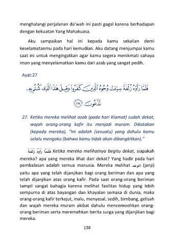 27. Ketika mereka melihat azab (pada hari Kiamat) sudah dekat,