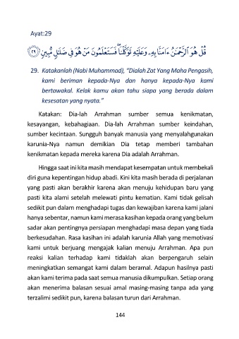 29.  Katakanlah (Nabi Muhammad), “Dialah Zat Yang Maha Pengasih,