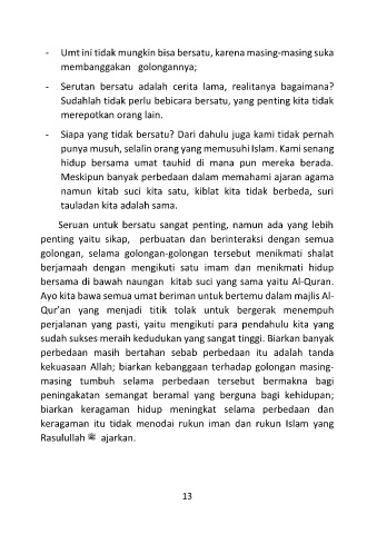 bersama di bawah naungan kitab suci yang sama yaitu Al-Quran.
