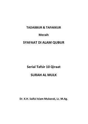 TADABBUR & TAFAKKUR Meraih SYAFAAT DI ALAM QUBUR Serial Tafsir 10 Qiraat SURAH AL MULK Dr. K.H. Saiful Islam Mubarak, Lc. M.Ag.