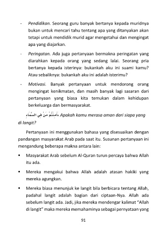pandangan masyarakat Arab pada saat itu. Susunan pertanyaan ini