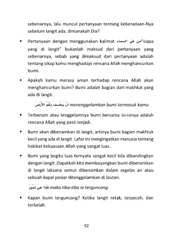 ▪ Bumi akan dibenamkan di langit, artinya bumi bagian makhluk