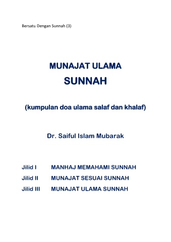 Bersatu Dengan Sunnah (3) MUNAJAT ULAMA SUNNAH (kumpulan doa ulama salaf dan khalaf) Dr. Saiful Islam Mubarak Jilid I MANHAJ MEMAHAMI SUNNAH Jilid II MUNAJAT SESUAI SUNNAH Jilid III MUNAJAT ULAMA SUNNAH
