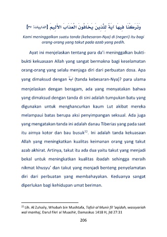 ] 37 :تايراذلا[ َ ميِلَلأا َباَذَعْلا َنوُفاَخَي َنيِذَ لِل ًةَيآ اَهيِف اَنْكَرَتَو