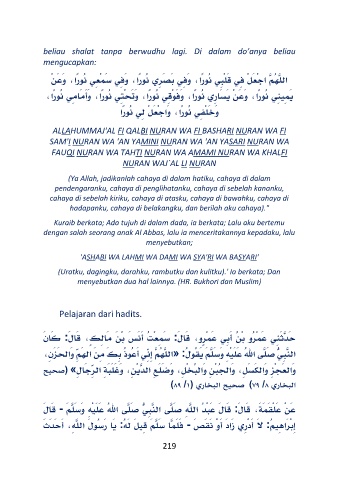 beliau shalat tanpa berwudhu lagi. Di dalam do’anya beliau