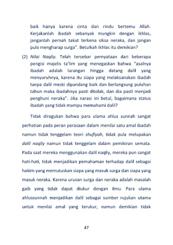 dalil naqliy namun tidak tenggelam dalam pemikiran semata.