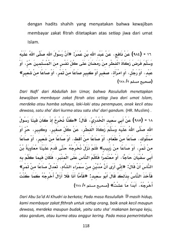 dewasa, satu sha’ dari kurma atau satu sha’ dari gandum. (HR. Muslim) .
