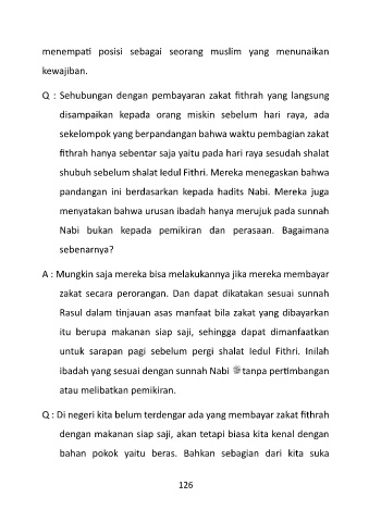 Q : Sehubungan dengan pembayaran zakat fithrah yang langsung